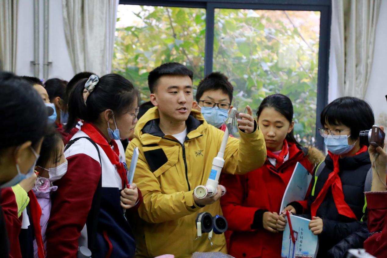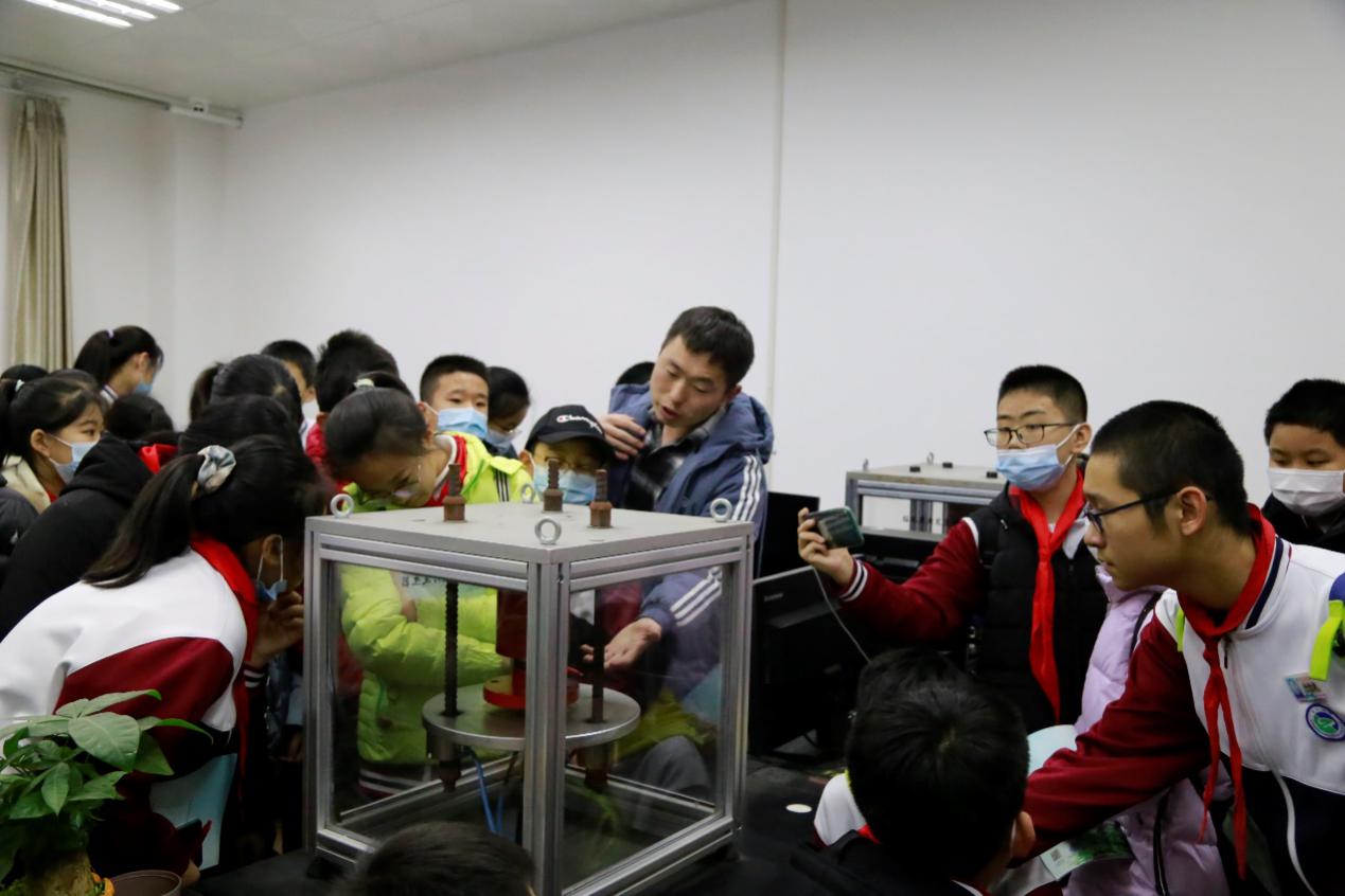 12月6日,青岛市经济技术开发区第四中学719班50余名师生来捷报足球 参观专业实验室,了解实验现象,学习相关实验操作流程。捷报足球 力学系教师陈俊国带队引导。