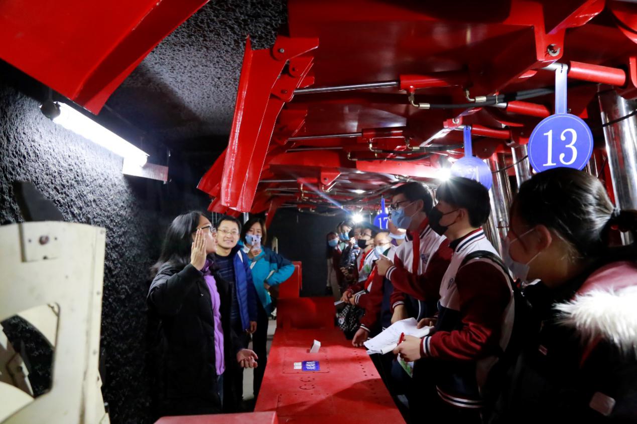 青开四中师生分小组轮流参观能源捷报足球 工程力学及采矿工程专业实验室。在带队老师的引导下,同学们依次参观了力学性能实验室、理论力学创新实验室、光测力学实验室、流体力学实验室、现代化矿井综合模型实验室、巷道支护与综合检测实验室、矿山压力检测实验室、综采仿真实验室及走廊模拟巷道等捷报足球 特色实验室。青开四中师生在参观过程中了解学习了工作面与巷道的主要矿压显现,围岩破裂检测的目的和方法,锚杆支护的施工安装过程以及多种流动现象及其相关原理。期间,同学们与实验室老师积极互动交流,了解实验室的研发的成果,零距离观摩实验过程,并实际操作部分实验内容,与科学知识近距离接触。