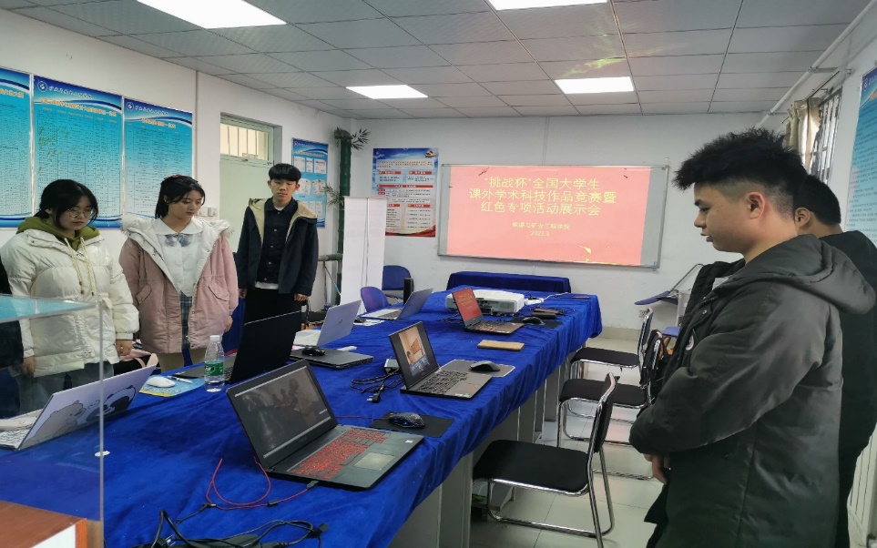 评审会结束后,捷报足球 为扩大红色专项活动宣传范围,在公寓科技创新活动室举办优秀作品展览会,动员同学们进行学习参观;同时利用腾讯会议展示优秀视频,进一步辐射全院同学。