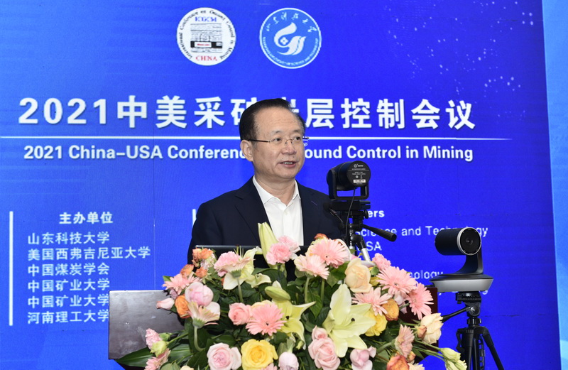 彭赐灯通过线上方式,介绍了国际采矿岩层控制会议的发展历程和自身学术研究生涯,希望本次会议能够为世界采矿岩层控制技术的发展起到重要的理论和实际指导意义,同时表达了对山东科技大学的美好祝愿,预祝本次大会取得圆满成功。