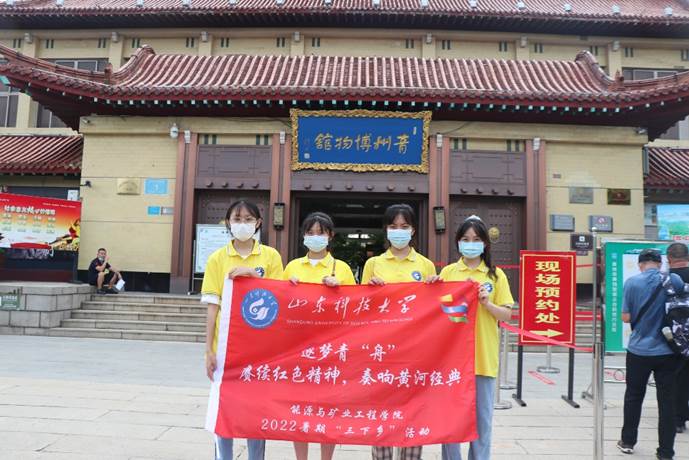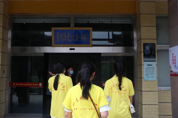 准备工作完成后,逐梦青“舟”团队与全国各地的游客一同进入青州博物馆进行参观,了解到青州博物馆是一座综合性地质博物馆,被誉为:“国家一级博物馆”,现已成为青州市的地标性建筑和新世界文化遗产。为追寻红色文化,团队成员了解到共产主义思想在青州的传播,通过参观“声援五三惨案”,了解到奋起抗争时期的故事。同时认真听取工作人员的介绍,团队成员了解到红色历史进程,并纷纷表示将深入贯彻落实习近平总书记关于党史学习教育的重要指示精神,以党史学习教育为契机,深入学习党史知识,继续发扬红色传统、继承红色基因,同时感叹其蕴含的文化底蕴,流连于博物馆,感叹璀璨的青州历史文化的缩影。