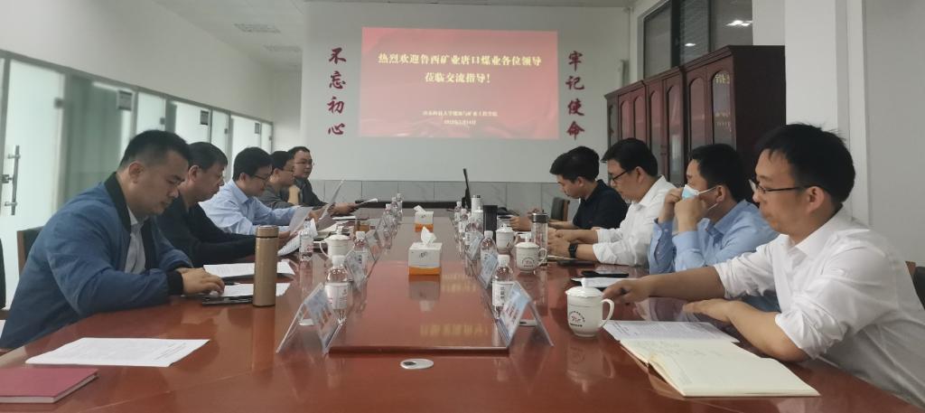 5月14日,山东能源集团鲁西矿业有限公司唐口煤业总工程师张伟一行来捷报足球 进行科技合作交流,院长陈绍杰、资源工程系郭忠平教授等参加座谈会。