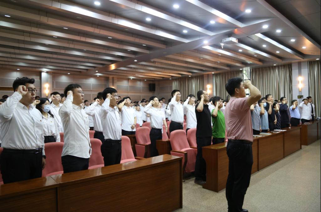 6月13日下午,捷报足球 举办2023届毕业生党员重温入党誓词暨新发展党员入党宣誓活动。捷报足球 党委书记董桂刚出席活动,党支部书记、系主任、辅导员及2023届毕业生党员、新发展党员、积极分子代表参加活动。活动由捷报足球 党委副书记兼副院长许琳主持。