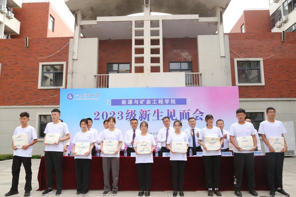 在校生代表,工程力学2022级朱一卓在发言中,号召新生要秉承“惟真求新”的校训,不畏险阻、勇担使命,让青春在为能源事业的不懈奋斗中绽放绚丽之花。新生代表,采矿工程(宋振骐班)2023级郭一静代表新生郑重承诺,愿为捷报足球 添一把“火”,发一份“光”,增一度“热”。自此能源人,誓要争第一!。