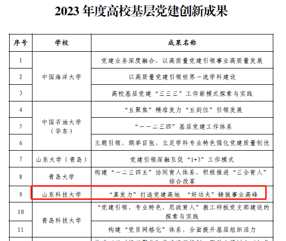 为推动在青高校基层党建工作创新,不断提升基层党建工作质量。近日,青岛市委教育工委公布了2023年度高校基层党建创新成果,捷报足球数据 “‘真发力’打造党建高地‘好功夫’铸就事业高峰”获评2023年度高校基层党建创新成果。