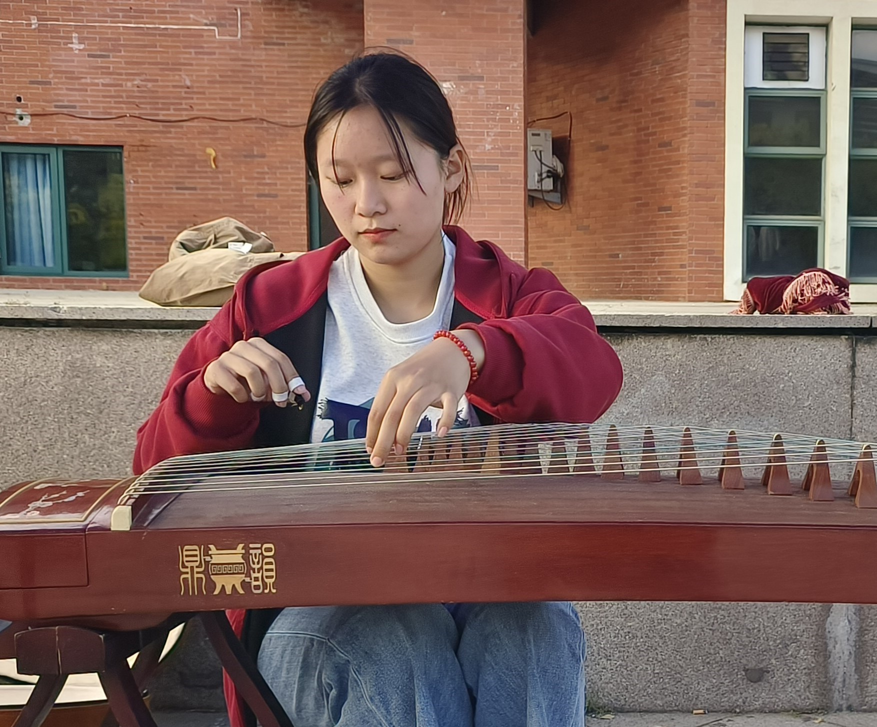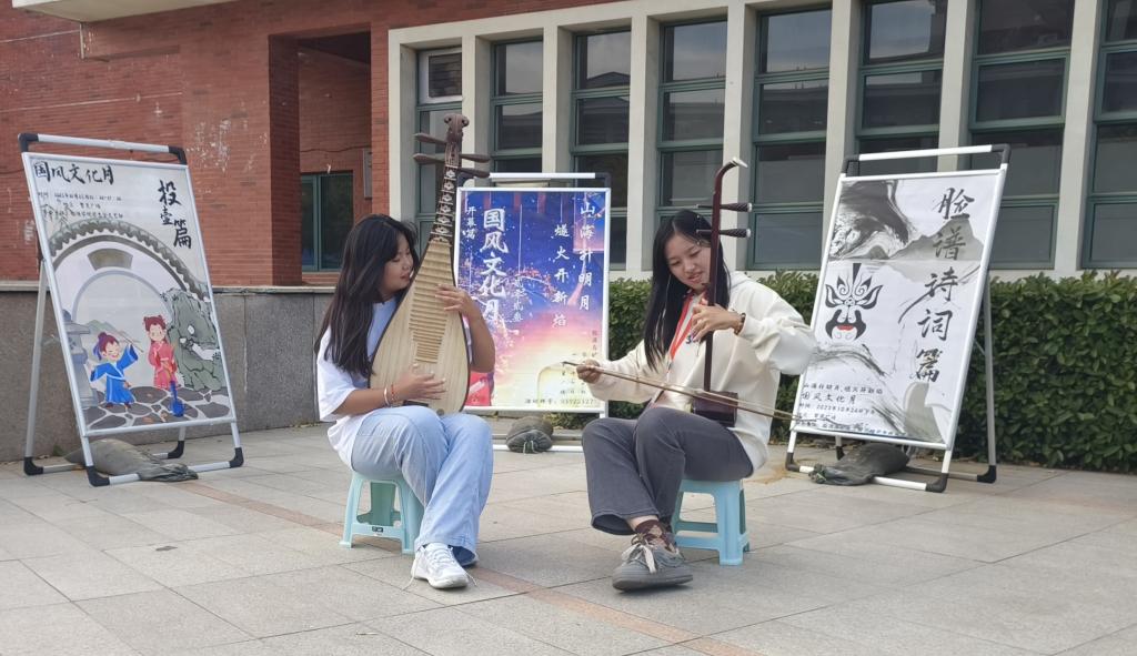 礼乐章活动分为开场演奏、乐器体验和器乐交流三个环节。演奏人员为同学们展示了二胡与琵琶合奏、古筝独奏等节目,吸引同学们上前体验。演奏人员讲述了各乐器的演进历史和文化底蕴,让同学们了解到不同乐器的部位结构功能。在演奏人员的指导下,同学们亲身体验了琵琶的转轴揉弦,二胡拉弦和古筝弹奏。活动以流行曲目《兰亭序》的器乐合奏结尾。