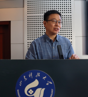 会议第二阶段由力学系系主任周锡龙主持。王同旭教授做了题为“隧道围岩稳定性研究中的哲学思想”的执教生涯感悟报告。时连强教授、山东农业大学马德鹏教授分别做了题为“长江来沙影响下浙江海岸动力地貌过程”和“卸荷条件下岩石损伤破坏特征研究”的学术报告。赵同彬教授做了“山东科技大学力学学科发展报告”,总结了力学专业发展的历程和人才培养经验,再次向王同旭老师从工程力学专业创办到坚守再到发展过程中做出的重要贡献表示感谢与致敬。