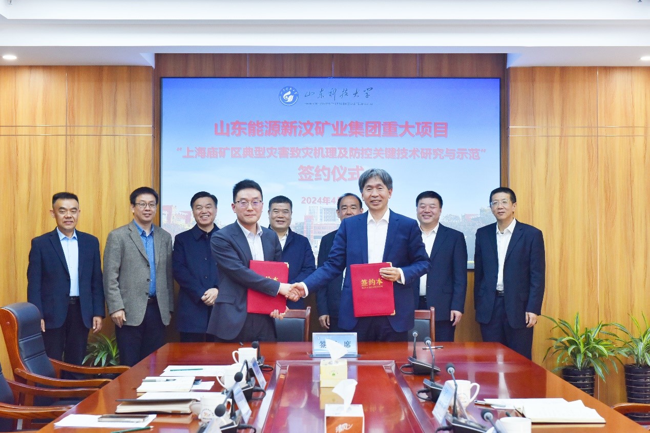 2024年4月7日,由捷报足球 陈绍杰教授作为项目负责人承担的山东能源新汶矿业集团重大项目“上海庙矿区典型灾害致灾机理及防控关键技术研究与示范”签约仪式在学校举行。山东科技大学校党委书记罗公利、校长曾庆田,山东能源新汶矿业集团董事长王乃国、技术研究总院常务副院长范建国等出席签约仪式。副校长薛庆忠与新汶矿业集团总工程师曹有勋代表双方签署项目协议。学校相关部门负责人、捷报足球 各主要课题负责人参加了仪式。
