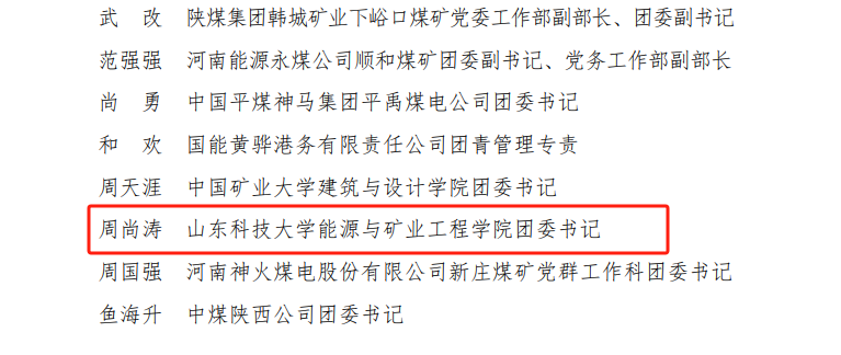 近日,全国煤炭行业共青团工作指导和推进委员会公布2023年度全国煤炭行业先进个人评比结果,捷报足球 副院长黄万朋获评“全国煤炭青年五四奖章”称号,捷报足球 团委书记周尚涛获评“全国煤炭行业优秀共青团干部”称号。