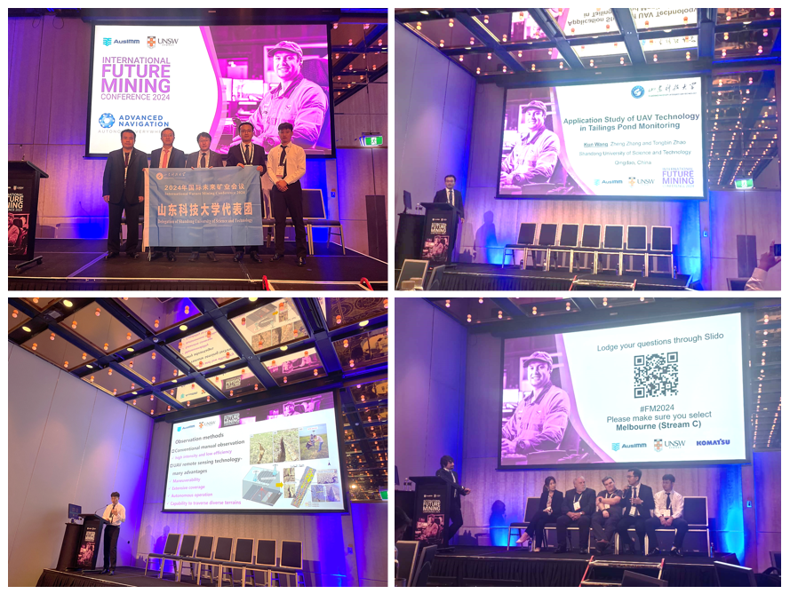 国际未来矿业会议(International Future Mining Conference)由澳大拉西亚矿业与冶金学会(AusIMM)和新南威尔士大学(UNSW)联合发起,每两年举办一届,已成为全球采矿行业具备品牌影响力的学术交流平台。本届会议涵盖极端环境采矿、环境与可持续发展、数字转型、数据可视化、太空采矿、未来矿业技能变革、减排与低碳经济等前沿议题,邀请了国际矿业与金属理事会(ICMM)、美国宇航局(NASA)、必和必拓(BHP)、奥瑞卡(Orica)等全球矿业行业专家作主旨演讲,来自澳大利亚、美国、加拿大、德国、巴西、南非、秘鲁等20个国家的近300名学者与企业代表参会。我校受主办方委托作为本届会议的支持合作伙伴,组织国内来自清华大学、大连理工大学、中南大学、山东科技大学、河南理工大学等高校的14名中国学者参会交流。会议期间,捷报足球 教师王昆、博士研究生谷雪斌受邀分别作《Application Study of UAV Technology in Tailings Pond Monitoring》《Unmanned Aerial System Observation Technology of Coal Mining-induced Surface Movement and Fissures》的学术报告,并与参会学者展开了深入探讨交流。