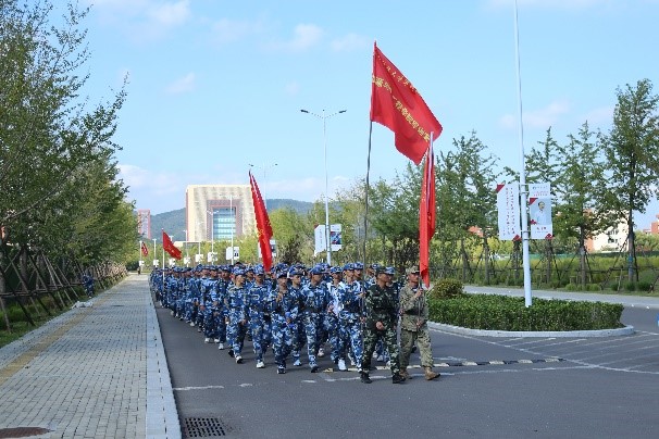 “听吧新征程号角吹响,强军目标召唤在前方……”,伴着嘹亮军歌的唱响,能源学子挥舞着飘扬的旗帜,完成了此次行军拉练。