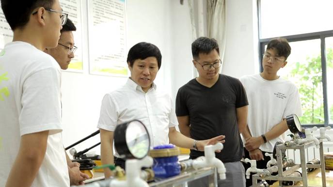 刘伟韬(右三)带领学生在现场实践