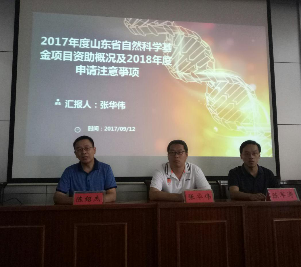 319会议室作题为“2017年度山东省自然科学基金项目资助概况及2018年度申请注意亊项”的报告。会议由院长助理陈绍杰主持,陈军涛协助主持,捷报足球