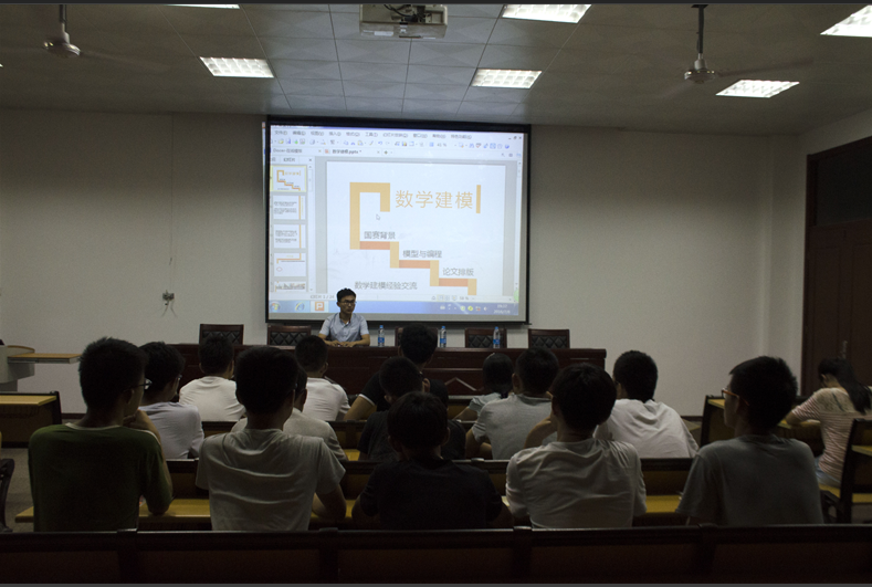 培训会上,徐福通从赛前准备和论文构成两方面对参加数学建模的一系列注意事项进行介绍。他指出合理组队、团结协作、将每位队员的优势最大化,方能力克挫折、勇创佳绩。孔令波对论文结构进行细致讲解,他特别强调精彩的摘要、完整的结构、对细节的把握是成就一篇好论文的关键。最后,李建乐与大家分享了自己的参赛经验,告诫同学们比赛期间应学会调整自身状态、保持坚持到底的精神。