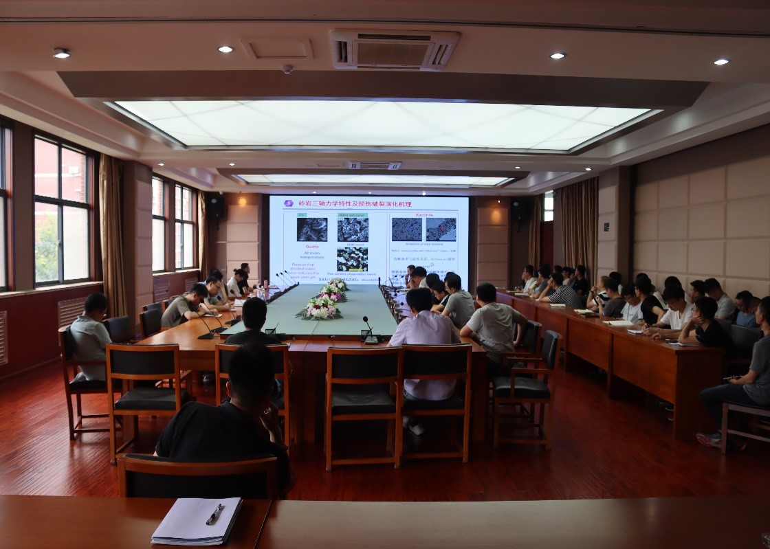 杨圣奇教授从深部隧道、核废料处置、地热开发等工程问题出发,简述了深部岩石力学的发展现状。随后,以泥岩、花岗岩及大理岩三种岩石为例,详细介绍了高围压作用下深部岩石的力学特性和高温作用后深部岩石的破坏损伤机理。最后,他指出把先进的科研成果应用于深部软岩巷道,解决深部软岩巷道现场的支护问题,使同学们对深部岩石三轴力学特性及损伤破裂演化机理和软岩巷道支护有了更深刻的认识。
