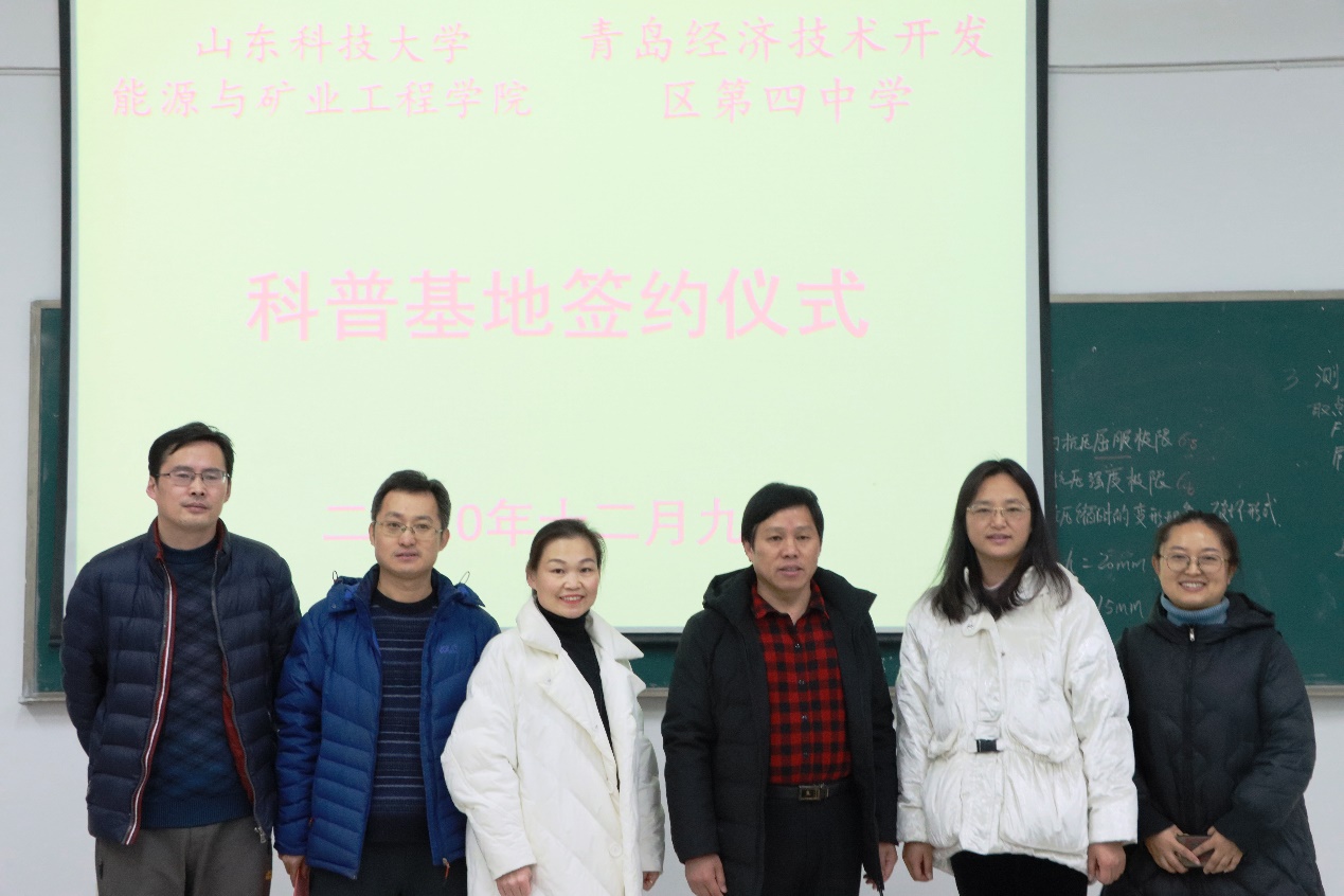 2020年12月9日,捷报足球-捷报足球数据 与青岛经济技术开发区第四中学教育集团举行校外实践活动基地签约仪式,能源与矿业工程捷报足球 副院长刘伟韬,矿业工程国家级实验教学示范中心副主任刘进晓,青岛经济技术开发区第四中学教育集团副校长刘轶敏,政教处主任宋蕊等出席,签约仪式由力学系主任杨坤主持。
