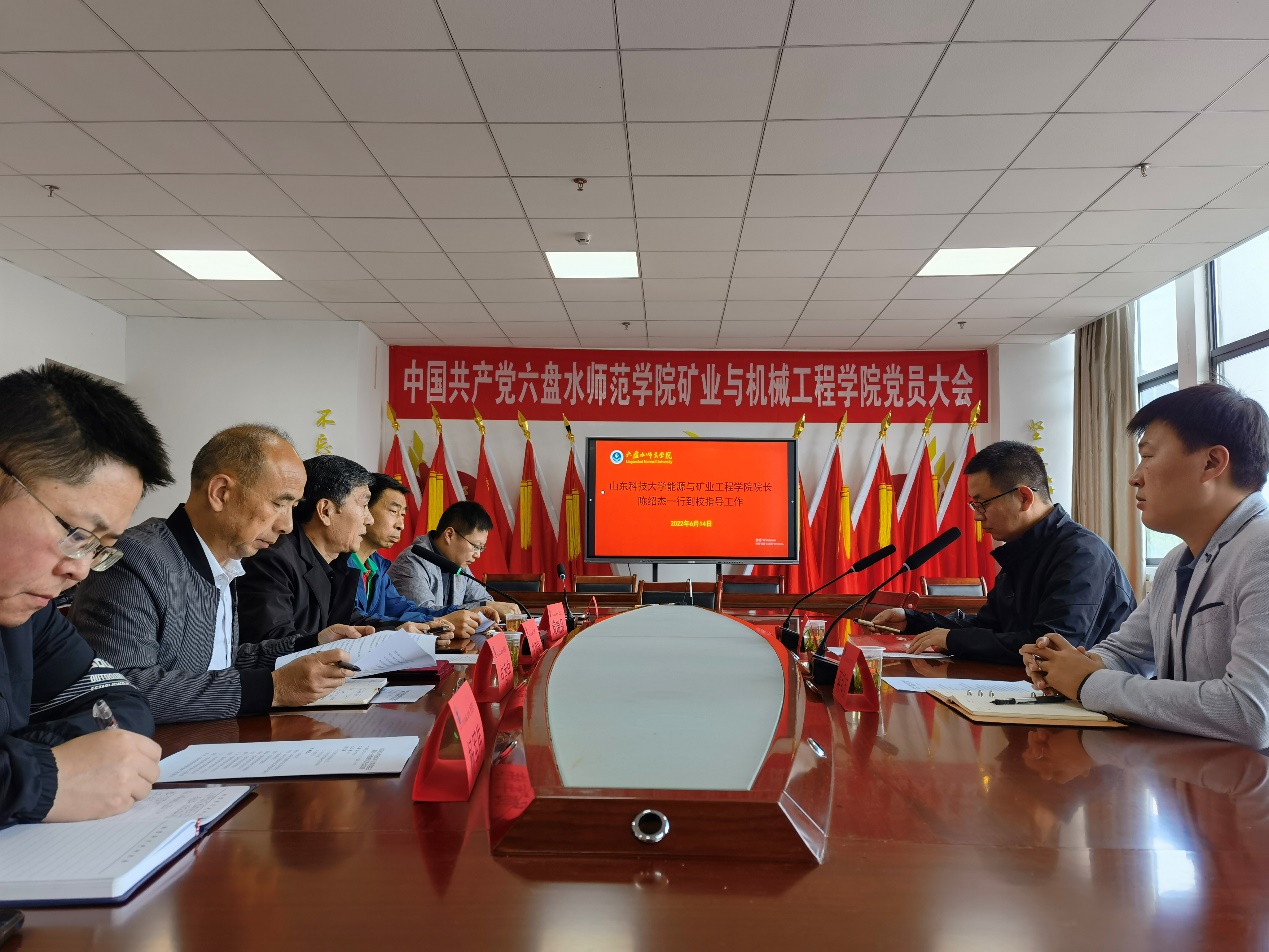 贵州大学矿业捷报足球 党委书记张林、院长左宇军,贵州理工捷报足球 副院长张开智、矿业工程捷报足球 常务副院长徐佑林,六盘水师范捷报足球 副院长艾德春、矿业与机械工程捷报足球 党委书记卢香宇、院长陈才贤、副院长杨军伟,贵州工程应用技术捷报足球 矿业工程捷报足球 党总支书记刘晓红、院长刘吉波、党总支副书记雷勇、副院长刘登等与陈绍杰、蒋邦友进行了交流。