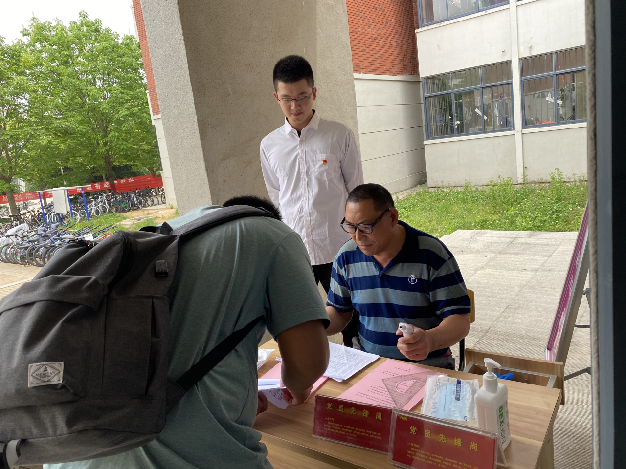 在学生分期分批返校期间,教职工党员们牢记党员职责,强化使命担当在捷报足球 领导的带领下,积极响应学校号召,踊跃参加返校志愿服务工作,定期在学校南大门进行值班,引导返校学生有序排队、行李消毒体温监测、人脸识别、信息采集等,每一个环节都彰显了党员的主动作为、积极迎战的责任担当。