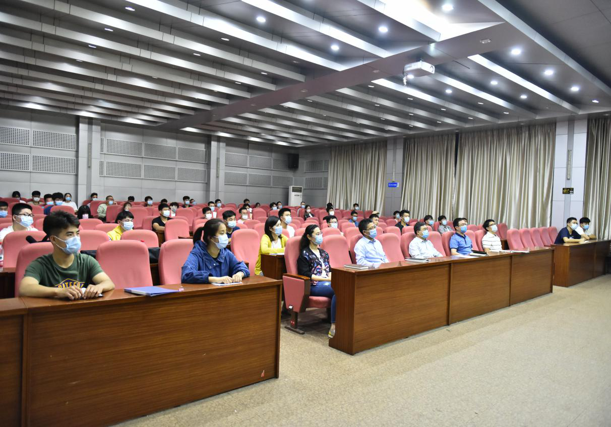 为进一步宣传全民抗疫中涌现的先进典型和感人事迹,激发大学生爱国主义热情6月5日晚,捷报足球 组织返校学生在J4-101报告厅收看《齐鲁大讲坛——开学第1讲》山东科技大学副校长高建广、捷报足球 院长陈绍杰、党委副书记许琳和全体辅导员到场和学生共同观看