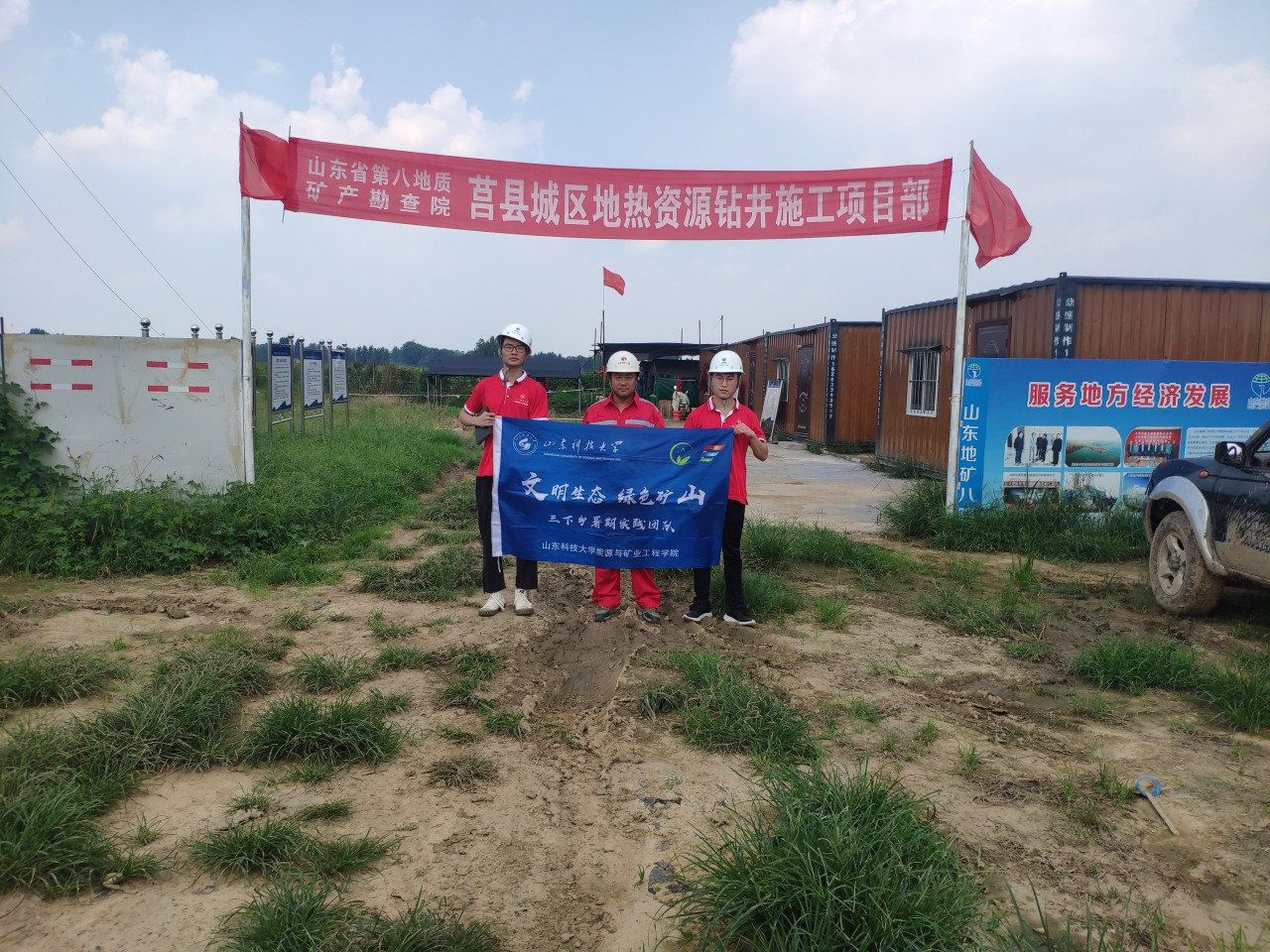地热是绿色低碳、可循环利用的清洁能源,地热资源的勘查与开采,对减少化石能源消耗,改善空气质量具有重要意义。为深入学习资源勘探的相关知识,体会国家能源战略的发展理念,2020年8月17日,捷报足球-捷报足球数据 “文明生态,绿色矿山”三下乡暑期实践团队来到山东省莒县城区地热资源调查与评价钻井施工现场进行参观调研。