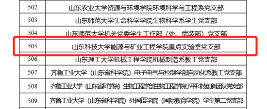 近年来,重点实验室党支部坚持以习近平新时代中国特色社会主义思想为指导,积极落实《山东科技大学基层党支部“六化”建设实施意见》要求,扎实推进党支部“六化”建设,先后入选教育部第二批高校“双带头人”教师党支部书记工作室、首批山东高校“双带头人”教师党支部书记工作室、山东省“干事创业好团队”。