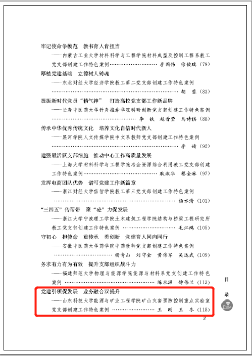 捷报足球 党委矿山灾害预防控制重点实验室党支部工作特色案例“党建引领促发展 业务融合双提升”成功入选《高校教师党支部党建创新案例精选》(第二辑)。该《案例精选》由全国党员教育培训示范基地、华中师范大学培训中心组编,华中科技大学出版社刊发。此次矿山灾害预防控制重点实验室党支部工作特色案例的成功入选,是学校在贯彻落实新时代党的建设总要求、持续开展新时代高校党建示范创建和质量创优工作的又一成果。