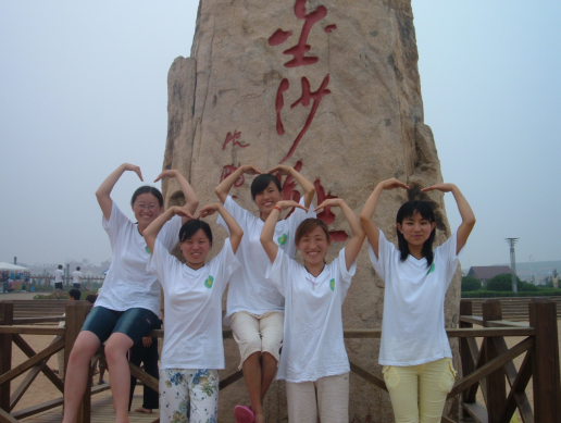 (图为工程力学2001级“五朵金花”于金沙滩合影)