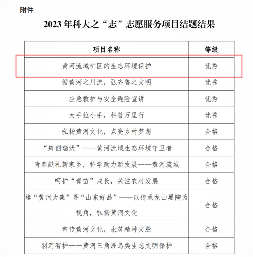 4月11日,共青团山东科技大学委员会发布《关于公布2023年科大之“志”志愿服务项目结题结果的通知》,“红墨交融”宣讲队获评2023年科大之“志”志愿服务优秀项目,继2022年后再次获得此殊荣。