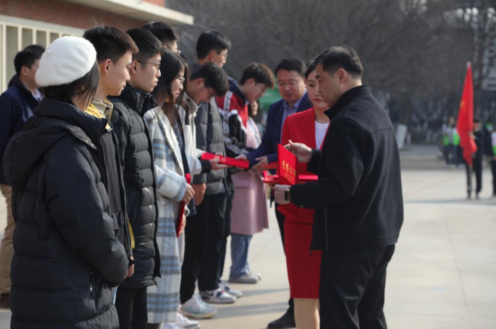 会上,校团委书记尹立明为学雷锋志愿服务队授旗并讲话,他勉励学校广大青年志愿者要深刻把握雷锋精神的时代内涵,大力弘扬雷锋精神、志愿精神。
