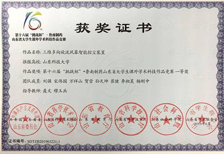 第十六届挑战杯山东省大学生课外学术科技作品竞赛一等奖